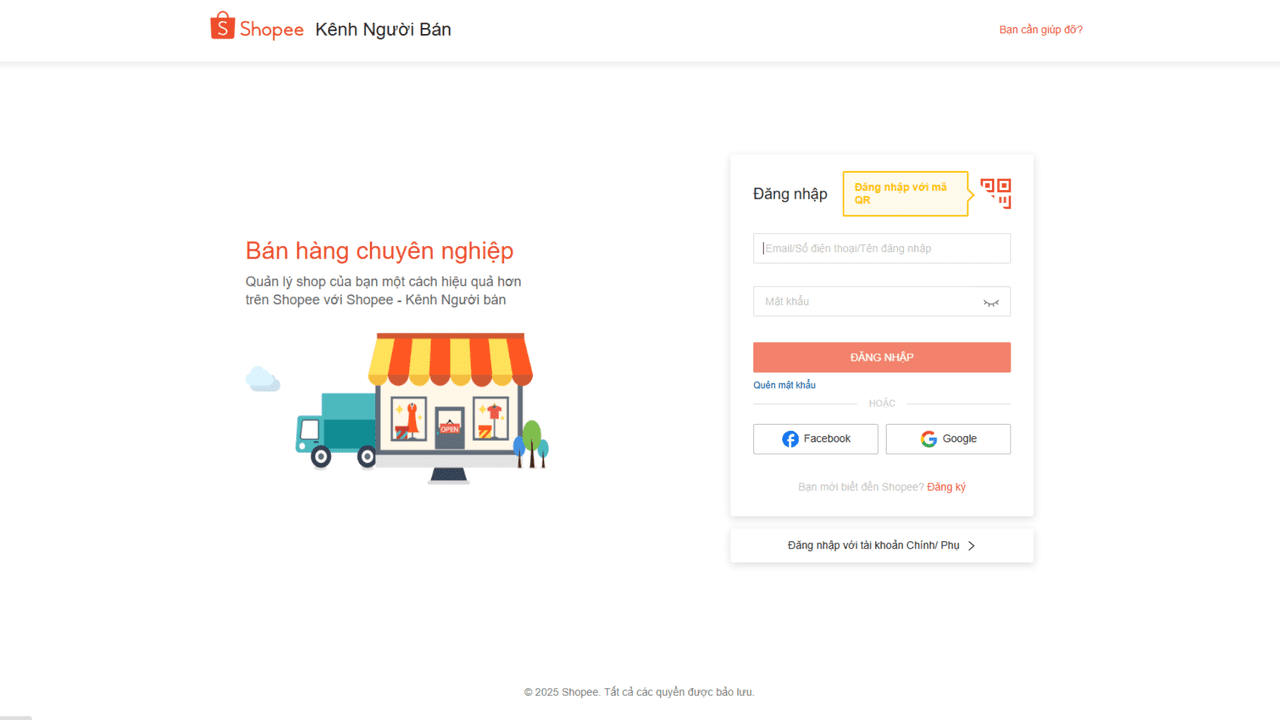 Đầu tiên, bạn cần có một tài khoản Shopee và truy cập vào Kênh Người Bán. Nếu chưa có, bạn chỉ cần đăng ký bằng số điện thoại của mình.