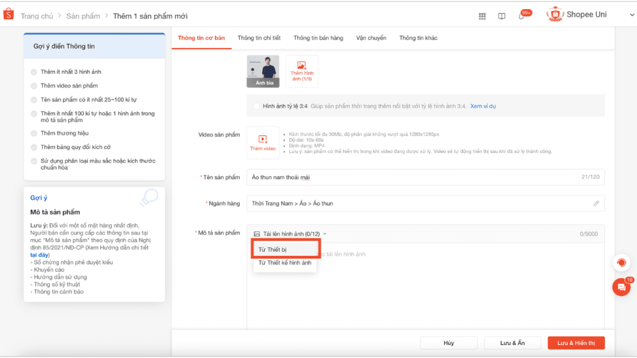 Đây là bước cuối cùng và cũng là bước thú vị nhất. Sau khi đã chuẩn bị sản phẩm, bạn hãy vào mục “Thêm sản phẩm mới” để bắt đầu. Hãy đăng tải những hình ảnh rõ nét, đẹp mắt để sản phẩm nổi bật. Sau đó, điền đầy đủ tên sản phẩm, mô tả chi tiết, giá bán và phân loại hàng (nếu có).