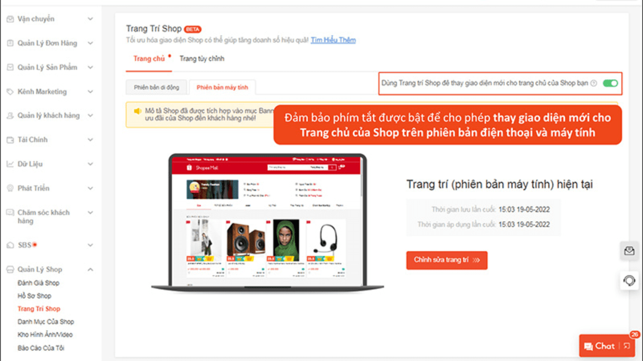 Để shop của bạn trở nên chuyên nghiệp và đáng tin cậy, đây là lúc bạn cần thiết lập những thông tin cơ bản. Hãy truy cập mục “Hồ sơ Shop” để cập nhật tên shop, ảnh đại diện, banner và mô tả shop. Tên shop nên ngắn gọn, dễ nhớ và liên quan đến sản phẩm bạn bán.